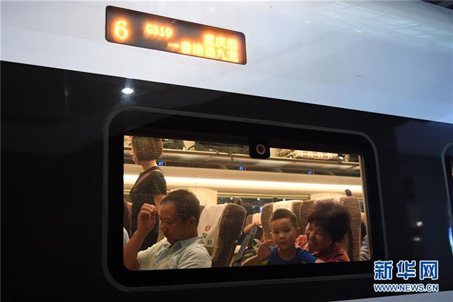 7月11日,一位小朋友在G319次列車上向窗外揮手。當(dāng)日,重慶至香港直達(dá)高鐵正式開通,此次首發(fā)的G319次復(fù)興號列車運行速度350km/h,沿途經(jīng)停遵義、貴陽東、桂林西、肇慶東、廣州南和深圳北站。列車由重慶西站至香港西九龍站全程運行需7小時37分鐘,全程票二等座票價為660元。目前內(nèi)地與香港聯(lián)通的高鐵車站已增加到58個。新華社記者唐奕攝