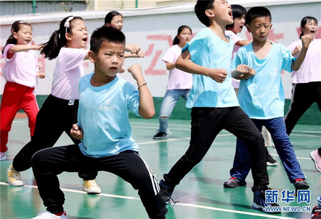 “小候鳥”們在武術(shù)課上訓練(7月15日攝)。
