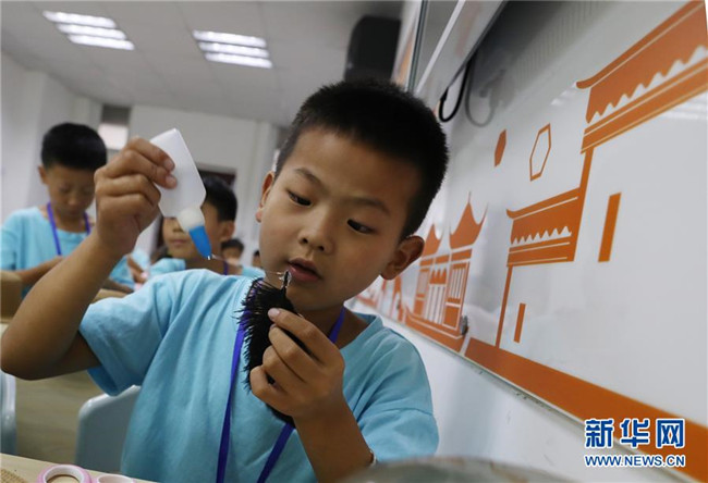 位于上海嘉定區(qū)南翔鎮(zhèn)的南翔工業(yè)開發(fā)區(qū),有許多來自外地的工人。暑假期間,許多小朋友從老家趕來開發(fā)區(qū)跟爸爸媽媽團聚。這些“小候鳥”的爸爸媽媽白天要上班,無暇照顧孩子,上海南翔工業(yè)開發(fā)區(qū)實業(yè)有限公司職工親子工作室從7月初到8月下旬,在工作日為“小候鳥”們安排了豐富多彩的活動,包括做手工、學畫畫、練武術(shù)等,讓“小候鳥”們度過一個文武雙全的暑假生活。 新華社記者 方喆 攝
