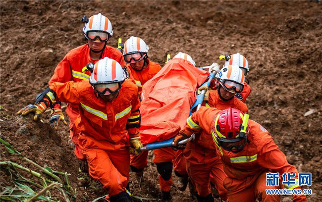 7月24日,救援人員從山體滑坡現(xiàn)場(chǎng)運(yùn)出遇難者遺體。 新華社記者 陶亮 攝