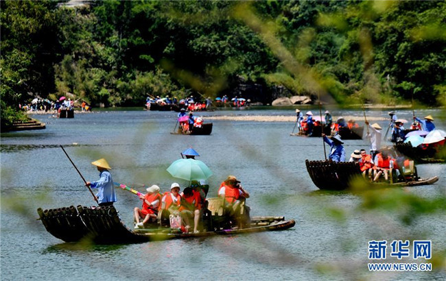 8月4日,游人乘竹筏漂流在武夷山九曲溪。新華社記者 張國俊 攝