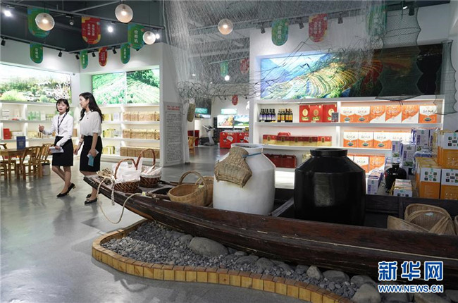這是安康市貧困戶產(chǎn)業(yè)就業(yè)服務(wù)中心內(nèi)展示的地方農(nóng)特產(chǎn)品(8月6日攝)。新華社記者 邵瑞 攝