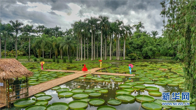 王蓮原產(chǎn)于南美洲熱帶地區(qū),西雙版納熱帶植物園自1963年開始引種,經(jīng)過多年的培育,已成為植物園一張亮麗的名片。每年6月—10月是王蓮的最佳觀賞時(shí)間,不少游客都會(huì)慕名前來,觀賞這種神奇的植物。新華網(wǎng)發(fā)(張嬌嬌 攝)