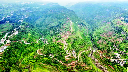 航拍大方縣對(duì)江鎮(zhèn)營(yíng)興村通組公路。 周訓(xùn)貴 攝