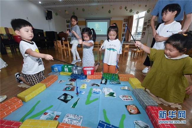 9月4日,孩子們通過趣味游戲?qū)W習(xí)垃圾分類的知識。