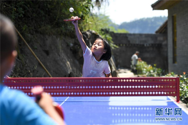 9月5日,十八洞小學(xué)學(xué)生在午飯后一起玩乒乓球。 新華社記者 陳澤國 攝