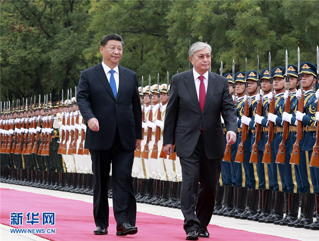 9月11日,國(guó)家主席習(xí)近平在北京人民大會(huì)堂同哈薩克斯坦總統(tǒng)托卡耶夫舉行會(huì)談。這是會(huì)談前,習(xí)近平在人民大會(huì)堂東門(mén)外廣場(chǎng)為托卡耶夫舉行歡迎儀式。 新華社記者 黃敬文 攝