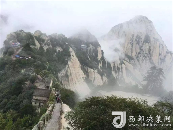 眾所周知,華山在五岳之中以“險峻”著稱。素有“奇險天下第一山”之譽(yù),華山的主體是由一塊完整碩大的花崗巖體構(gòu)成的,挺拔地屹立在渭河平原。東、南、西三峰拔地而起,如利刃削就。由于華山太險,所以唐代以前很少有人登臨,歷代君王祭祀西岳,也只是在山下西岳廟中舉行大典。據(jù)記載,直到魏晉南北朝時期,還沒有通向華山峰頂?shù)牡缆?。唐代才逐漸在北坡沿溪谷而上開鑿了一條險道,也從此有了“自古華山一條路”的說法。