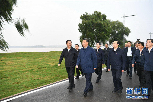 9月18日上午,中共中央總書記、國家主席、中央軍委主席習(xí)近平在鄭州主持召開黃河流域生態(tài)保護(hù)和高質(zhì)量發(fā)展座談會并發(fā)表重要講話。這是座談會前,習(xí)近平于17日下午在鄭州黃河國家地質(zhì)公園,沿黃河岸邊步行察看周邊環(huán)境,了解沿黃地區(qū)生態(tài)保護(hù)、水資源利用、堤防建設(shè)和防洪形勢等情況。 新華社記者 謝環(huán)馳 攝