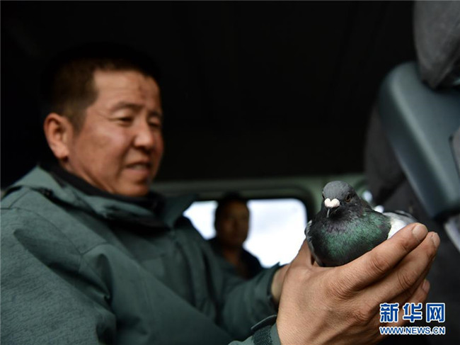 9月24日,青海湖國(guó)家級(jí)自然保護(hù)區(qū)管理局的巡湖觀測(cè)人員王延明在巡湖期間救治一只鴿子。