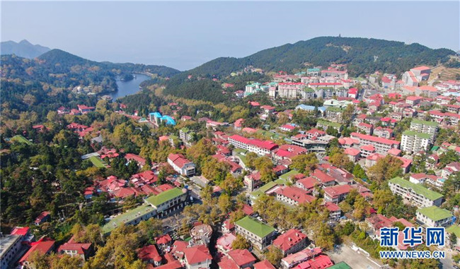 這是10月10日在廬山風(fēng)景區(qū)內(nèi)拍攝的牯嶺鎮(zhèn)(無(wú)人機(jī)拍攝)。新華社記者 胡晨歡 攝