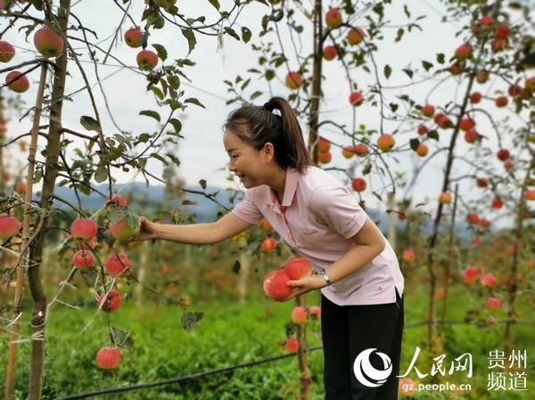 游客在桐梓縣官倉鎮(zhèn)蘋果種植基地體驗采摘樂趣。王欽 攝