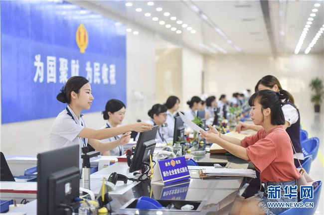 國家稅務(wù)總局泉州市稅務(wù)局豐澤街辦稅服務(wù)廳的工作人員在新辦企業(yè)服務(wù)窗口為納稅人辦理業(yè)務(wù)(2018年9月13日攝)。國地稅合并后,國家稅務(wù)總局福建省稅務(wù)局在全省推行新辦納稅人“套餐式”服務(wù)。 新華社記者 宋為偉 攝