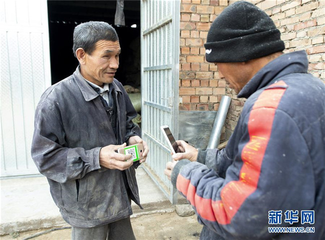 馬騰?。ㄗ螅┱谟枚S碼收取磨面的加工費(fèi)(10月25日攝)。 新華社發(fā)(楊植森 攝)
