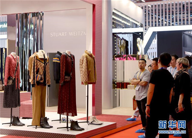 11月3日,在品質(zhì)生活展區(qū)內(nèi),展商對時裝的陳列效果進行最后確認(rèn)。新華社記者劉穎攝