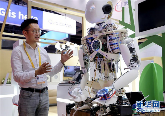 11月3日,科技生活展區(qū)的德國英飛凌公司的機器人Roboy已完成調(diào)試,它將在展會上和觀眾進行多項有趣互動。新華社記者劉穎攝