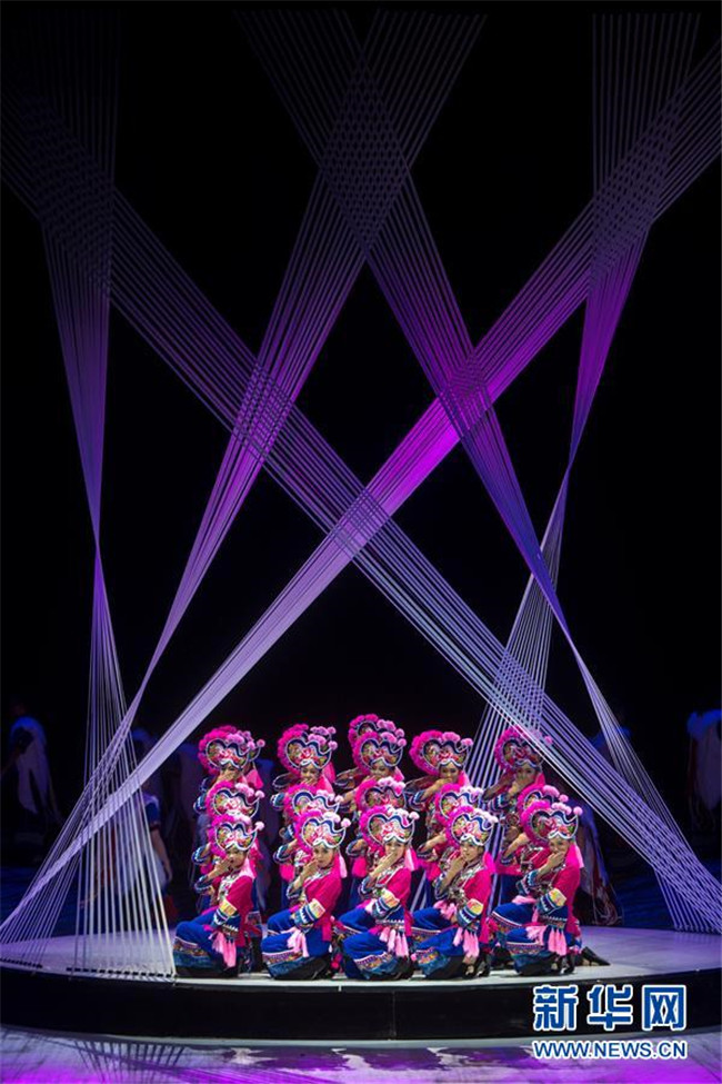 演員在音樂舞劇《云繡彝裳》第三章節(jié)“彝家有女”中表演(11月15日攝)。新華社記者胡超攝