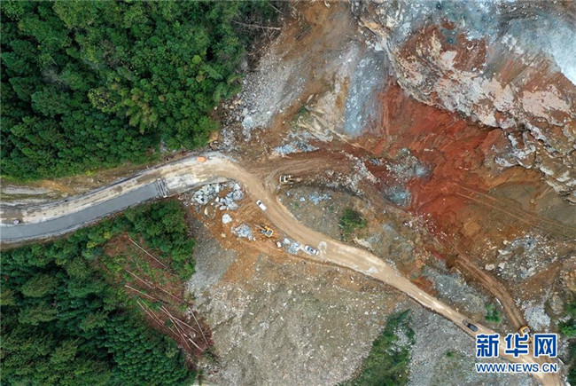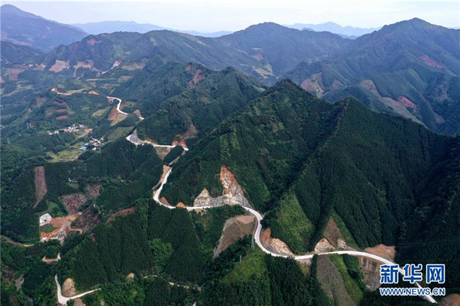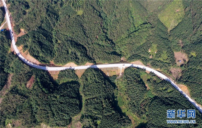 這是位于廣西融水苗族自治縣四榮鄉(xiāng)境內(nèi)在建的羅融二級公路(11月19日無人機(jī)拍攝)。 新華社記者 黃孝邦 攝