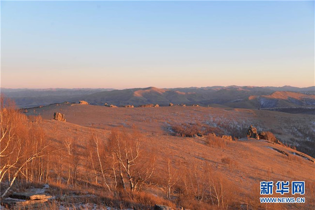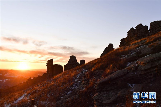 克什克騰石陣景區(qū)位于內蒙古赤峰市克什克騰旗,是國家5A級景區(qū)。冬日黃昏,在落日和晚霞的映襯下,克什克騰石陣景區(qū)一派壯美景象。 新華社記者 徐欽 攝