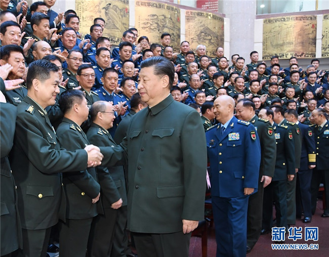 11月27日上午,全軍院校長(zhǎng)集訓(xùn)在國(guó)防大學(xué)開(kāi)班。中共中央總書記、國(guó)家主席、中央軍委主席習(xí)近平出席開(kāi)班式并發(fā)表重要講話,代表黨中央和中央軍委,向全軍院校長(zhǎng)和軍事教育戰(zhàn)線的同志們致以誠(chéng)摯問(wèn)候。這是習(xí)近平親切接見(jiàn)集訓(xùn)班全體學(xué)員。 新華社記者 李剛 攝