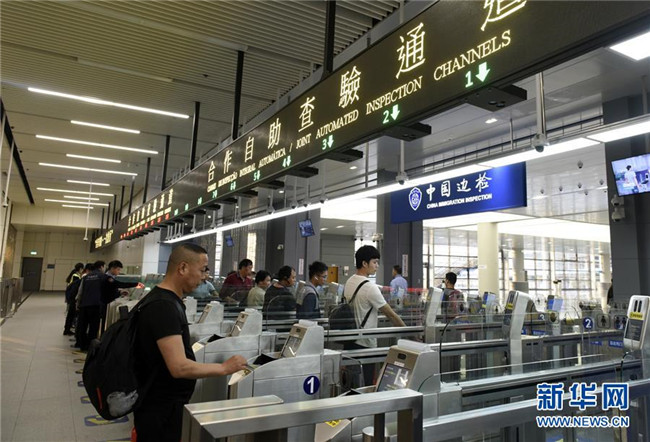 在港珠澳大橋澳門邊檢大樓,旅客從自助查驗通道通關去往廣東珠海(11月21日攝)。新華社記者 徐亮 攝