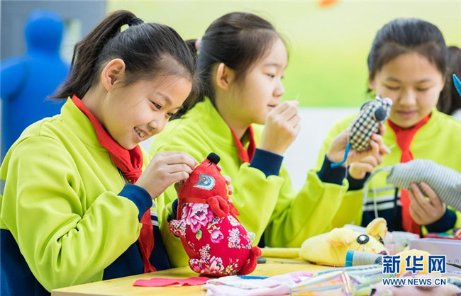 當(dāng)日,內(nèi)蒙古呼和浩特市玉泉區(qū)通順街小學(xué)“巧手社團(tuán)”的學(xué)生在老師的指導(dǎo)下,利用身邊的布頭、絲綿等廢棄物,制作生肖鼠布藝作品,表達(dá)對(duì)新年的美好祝愿。近年來(lái),玉泉區(qū)教育部門(mén)大力推動(dòng)“傳統(tǒng)文化進(jìn)校園”活動(dòng),在當(dāng)?shù)貙W(xué)校里開(kāi)設(shè)剪紙、面塑、戲曲等民間藝術(shù)課程,讓學(xué)生感受傳統(tǒng)文化的魅力。 新華網(wǎng) 發(fā)(丁根厚 攝)