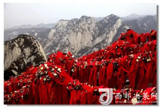 華山是一座愛(ài)情的殿堂。發(fā)生在華山上的每一個(gè)愛(ài)情故事都讓人感動(dòng)、讓人頂禮膜拜。眾所周知的神話傳說(shuō)《寶蓮燈》中,三圣母為了愛(ài)情,被二郎神用巨石壓在華山峰下;弄玉為了愛(ài)情,逃離安逸的生活,與蕭史雙雙來(lái)到華山,琴瑟合鳴;漢臣王咸不畏艱險(xiǎn),到華山尋找賢妻南陽(yáng)公主等等這些愛(ài)情故事,感天動(dòng)地,流傳不衰。也許是讓華山上這些動(dòng)人的愛(ài)情故事所感染,不知從什么時(shí)候開(kāi)始,游人將自己對(duì)美好愛(ài)情的向往,對(duì)理想愛(ài)情固若磐石的期望用一把把閃閃的金鎖,堅(jiān)定的鎖在了華山之上,在華山的見(jiàn)證下,在華山神的保佑下,舉案齊眉、白頭偕老。