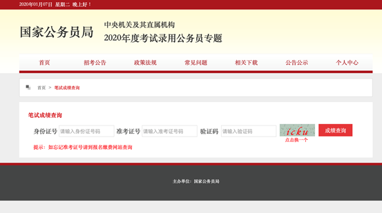 筆試成績查詢界面截圖(來源:國家公務員局網(wǎng)站)
