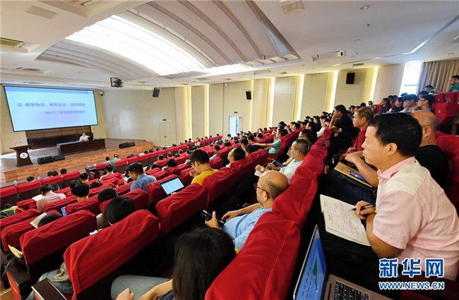 2019年9月18日,福建工程學院教師代表參加“不忘初心、牢記使命”主題教育報告會。新華社記者 林善傳 攝