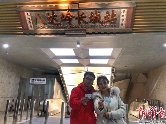 最后檢查完八達嶺長城站的防撞條、電梯等細節(jié)后,手機屏幕的時鐘跳到了深夜1點,32歲的胡維急忙趕回不遠處的員工宿舍。那里,妻子肖雅萍正在屋里試婚紗。