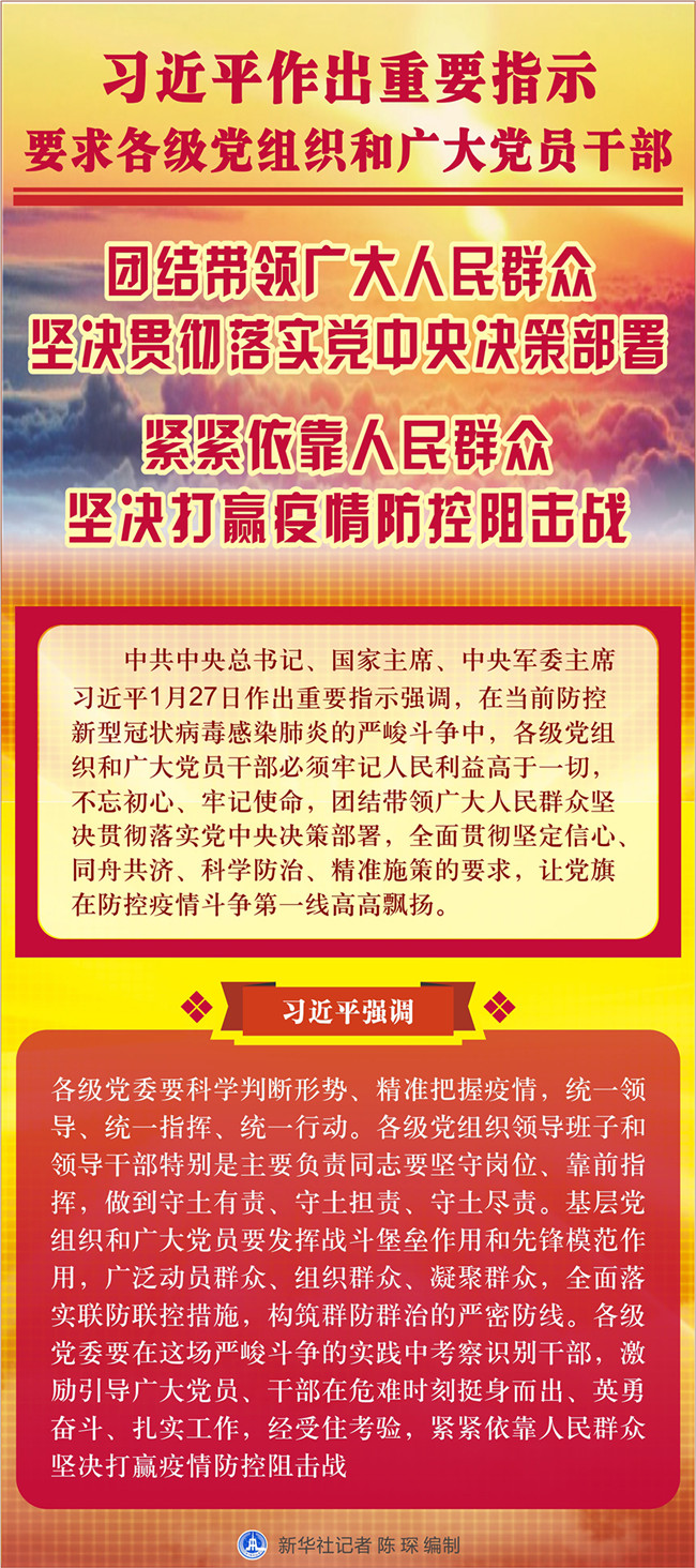 習(xí)近平作出重要指示要求各級(jí)黨組織和廣大黨員干部 團(tuán)結(jié)帶領(lǐng)廣大人民群眾堅(jiān)決貫徹落實(shí)黨中央決策部署 緊緊依靠人民群眾堅(jiān)決打贏疫情防控阻擊戰(zhàn)