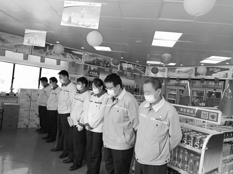 4月4日10時,分公司機關、各區(qū)域和加油站有懸掛國旗的全部下半旗志哀,員工默哀3分鐘,在確保安全和正常經(jīng)營秩序的前提下,部分加油站組織進站車輛鳴笛志哀。