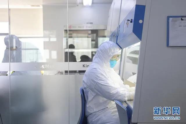 ▲實驗室檢驗人員在生物安全柜里面操作,對核酸樣本進(jìn)行提取。圖片來源:新華網(wǎng)