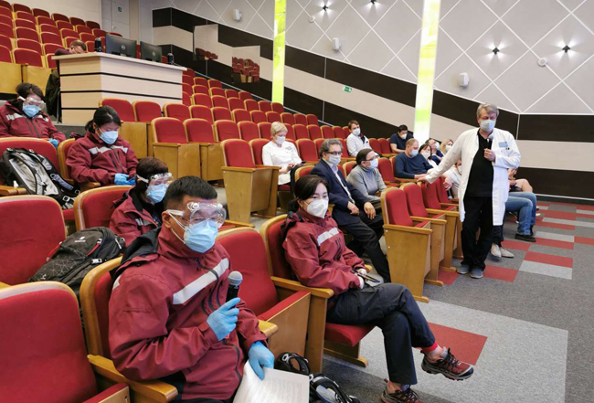 7天時(shí)間專(zhuān)家們已經(jīng)在當(dāng)?shù)氐?家醫(yī)院與醫(yī)學(xué)界同仁分享了經(jīng)驗(yàn),還通過(guò)視頻連線(xiàn)向在俄華僑華人、中資企業(yè)和留學(xué)生代表講解新冠防控科普知識(shí),解答相關(guān)問(wèn)題,并交接了防疫物資。