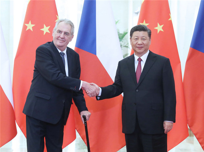 2019年4月28日,國(guó)家主席習(xí)近平在北京人民大會(huì)堂會(huì)見(jiàn)捷克總統(tǒng)澤曼。新華社記者 姚大偉 攝