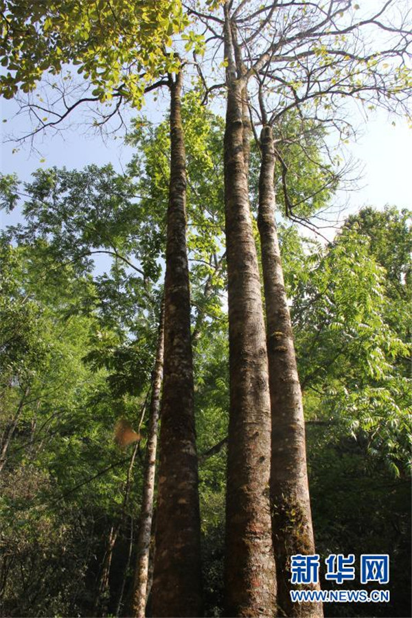 這是4月15日拍攝的在云南高黎貢山國(guó)家級(jí)自然保護(hù)區(qū)保山段發(fā)現(xiàn)的滇桐植株。新華社發(fā)(徐聰麗攝)