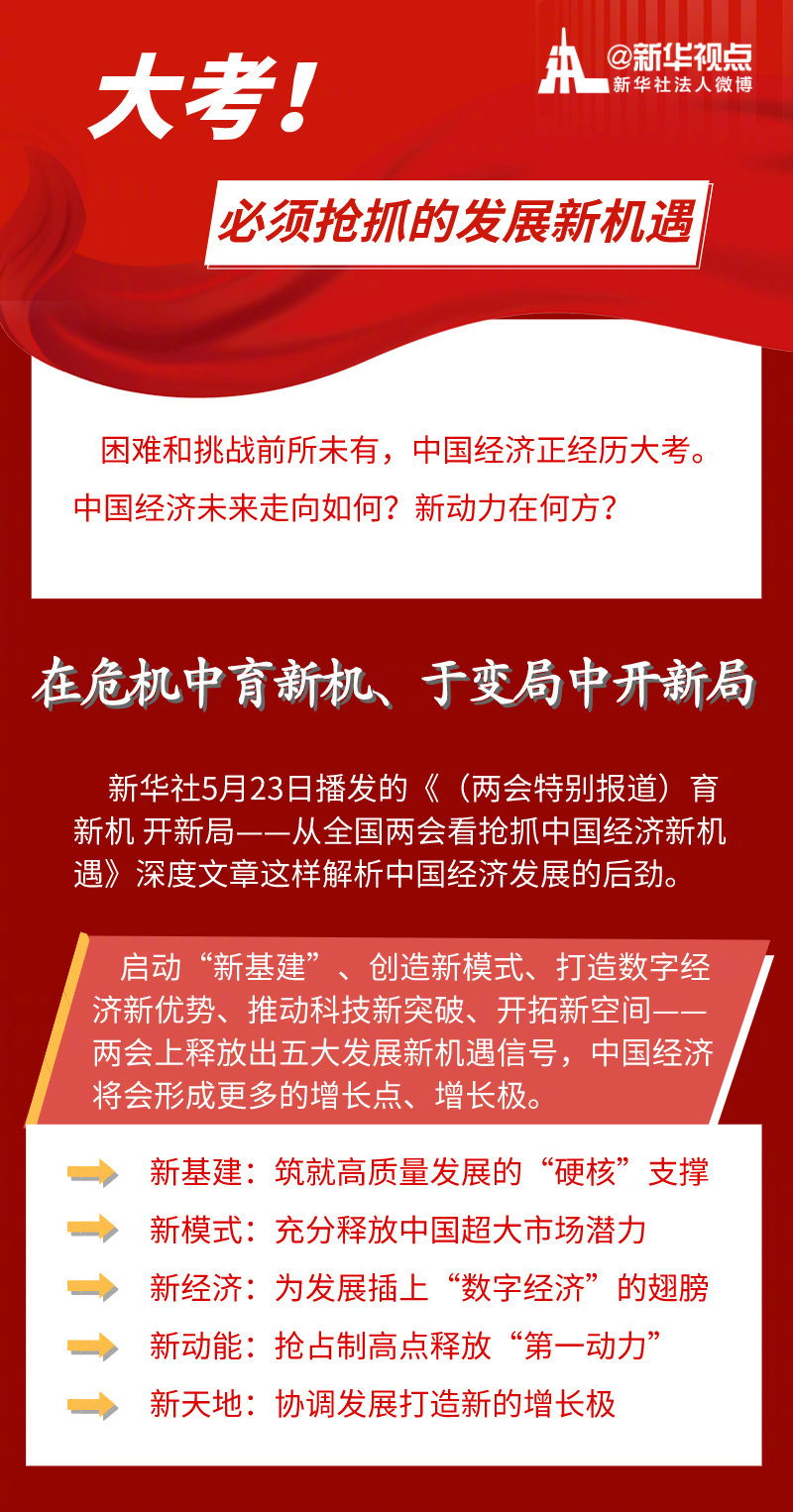 啟動“新基建”、創(chuàng)造新模式、打造數(shù)字經(jīng)濟(jì)新優(yōu)勢、推動科技新突破、開拓新空間——不斷涌現(xiàn)的新機(jī)遇、新趨勢,正匯聚起不竭新動能,推動中國經(jīng)濟(jì)乘風(fēng)破浪、行穩(wěn)致遠(yuǎn)。