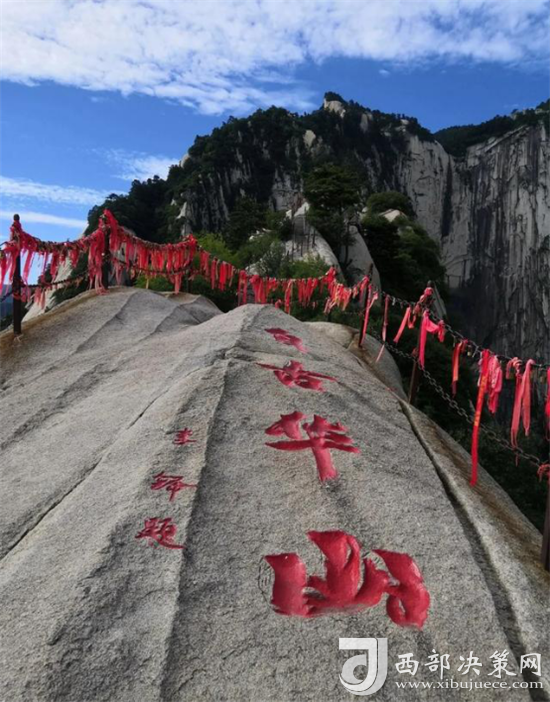 眾所周知 “自古華山一條路”是一道奇觀。這條道路或越澗跨溪,或臨崖盤山,或入崖間深谷,或走峭壁嶺脊,或平坦或曲陡,或寬敞或狹窄,曲折變化,跌宕起伏,把人帶入意境深邃的萬般景象之中。道路兩旁遍布的摩崖石刻,使人仿佛走進一個書法藝術的走廊。一步一景一傳說,更使華山沿途披上了濃厚的文化色彩。