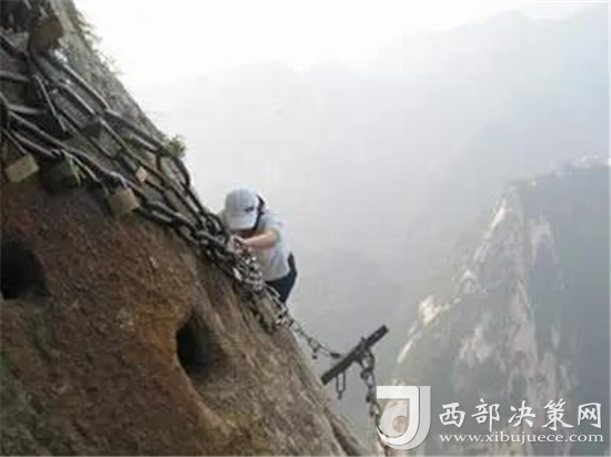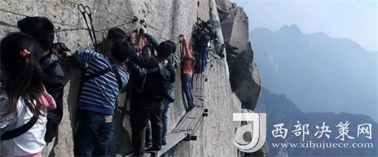 長空棧道位于華山南峰東側山腰,是華山派第一代宗師元代高道賀志真為遠離塵世靜修成仙,在萬仞絕壁上鑲嵌石釘搭木椽而筑。棧道上下皆是懸崖絕壁,鐵索橫懸,由條石搭成尺許路面,下由石柱固定,游人至此,面壁貼腹,屏氣挪步,被喻為“華山第一天險”。不過經(jīng)歷了新冠病毒的考驗,真的不知道這對于偉大的醫(yī)護人員來說算不算險。
