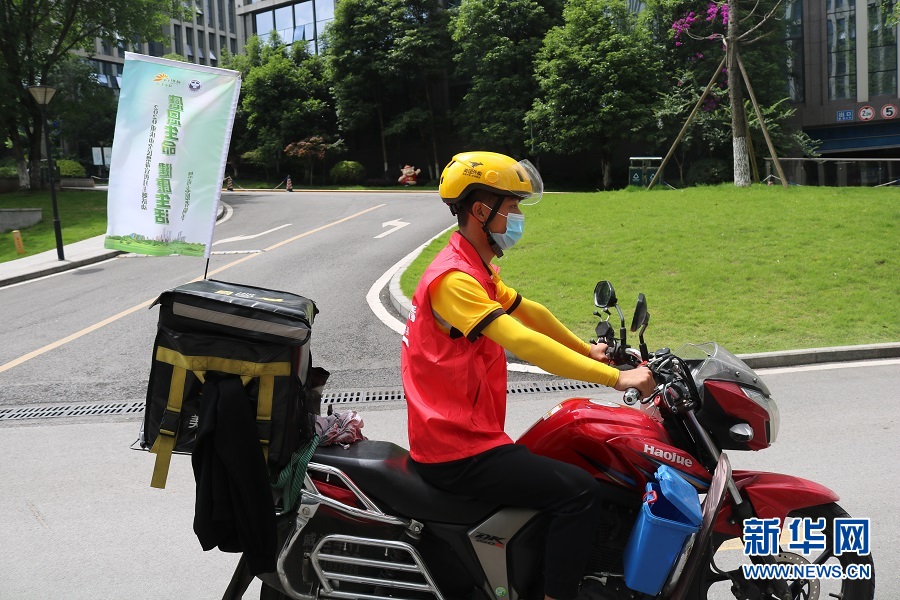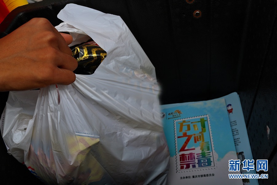 在重慶,像周歡這樣的騎手禁毒志愿者有60名。新華網(wǎng)發(fā) (滕華 攝)