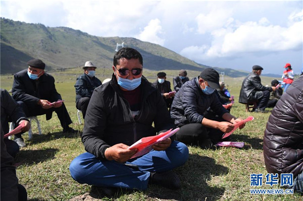 6月20日,在布爾津縣阿貢蓋提草原,牧民在看布爾津縣也格孜托別鄉(xiāng)克孜勒托蓋村家庭醫(yī)生簽約團隊發(fā)放的宣傳材料。圍繞實現(xiàn)人人享有基本醫(yī)療衛(wèi)生服務目標,2016年起,新疆布爾津縣開展家庭醫(yī)生簽約服務工作。該縣組建家庭醫(yī)生簽約團隊65個,團隊醫(yī)務人員233名,通過手機APP、基本公衛(wèi)系統(tǒng)與全縣建檔立卡貧困戶進行電子化簽約,提升村醫(yī)隨訪的工作效率和質(zhì)量。截至目前,已完成簽約42936人,履約40043人。新華社記者沙達提攝