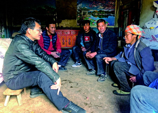 2018年12月,邊慧夏(左一)到李子溝村與村民座談。 均為本報記者吳振東攝