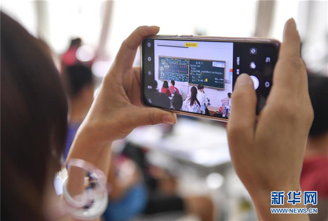 7月6日,吉林省孤兒學(xué)校高三年級班主任吳東輝用手機(jī)拍攝學(xué)生們寫給她的“請假條”。 新華社記者 許暢 攝