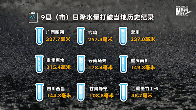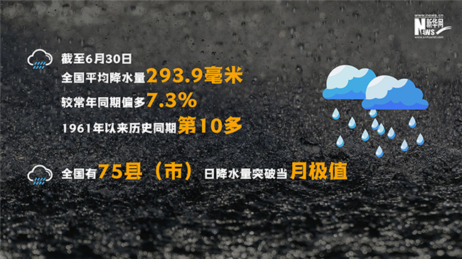 入汛以來,全國有75縣(市)日降水量突破當月極值,有9縣(市)日降水量打破當地歷史紀錄。