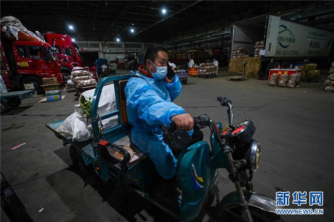凌晨的新疆九鼎農產(chǎn)品批發(fā)交易市場異常忙碌。各式蔬菜在這里匯集,大批菜商搶抓時間采購,他們采用“螞蟻搬家”的方式要將蔬菜趕在9點鐘之前放在直銷點的貨柜上,方便居民選購。陳金奇就是其中之一。 陳金奇負責的烏魯木齊市沙依巴克區(qū)揚子江街道青松苑社區(qū)蔬菜直銷點輻射三個小區(qū)和一家醫(yī)院。“從這次烏魯木齊發(fā)生疫情以來,我們一直沒有關門,開足馬力滿足周邊居民的生活需求。”陳金奇說。 凌晨四點是陳金奇一天忙碌的開始。這一刻,他開著面包車驅車20分鐘前往烏魯木齊最大的一級農副產(chǎn)品批發(fā)交易市場——新疆九鼎農產(chǎn)品批發(fā)交易市場采購。 經(jīng)過嚴格的防疫處理后,陳金奇進入市場。為提高效率,他放下面包車換駕電動三輪車穿行在這座龐大的市場里。“黃瓜多少錢?西紅柿多少錢?小白菜多少錢……”在新鮮、價格和速度中,陳金奇總能找到最好的結合點。 經(jīng)歷了兩個半小時,總重超過一噸的新鮮蔬菜分四批采購完成裝入面包車里。“現(xiàn)在市場里各類蔬菜是比較豐富的,山東的生姜、五家渠的芹菜、河南的蒜苔等都能順利買到。”陳金奇介紹,現(xiàn)在最重要的是快速將這些鮮菜送到居民手中。 忙碌了近三個小時,這座城市的天際線慢慢顯露出來。陳金奇在回程的汽車上,黎明時分的金色陽光映照著他黝黑的臉龐。“做好自己的事情就足夠了,我就是要盡全力讓居民吃上新鮮蔬菜。” 一年只有年三十和初一才能休息的陳金奇知道,現(xiàn)在這座城市比任何時候都需要他。