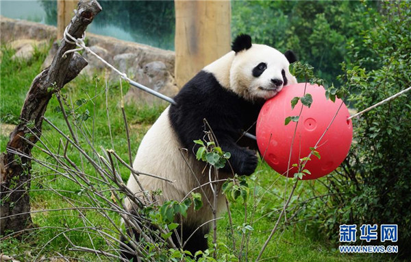 8月16日,大熊貓“園滿”在西寧熊貓館內(nèi)玩耍。青海省西寧熊貓館的四只大熊貓已經(jīng)在西寧生活了一年多,在工作人員的悉心照顧下,已經(jīng)適應(yīng)了青藏高原的氣候,身體各項(xiàng)指標(biāo)正常。新華社記者薛玉斌攝