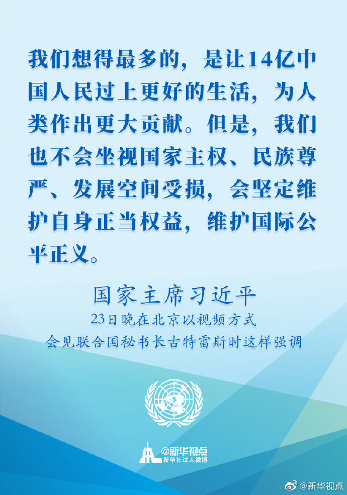 國家主席習近平23日晚在北京以視頻方式會見聯(lián)合國秘書長古特雷斯時講話的金句