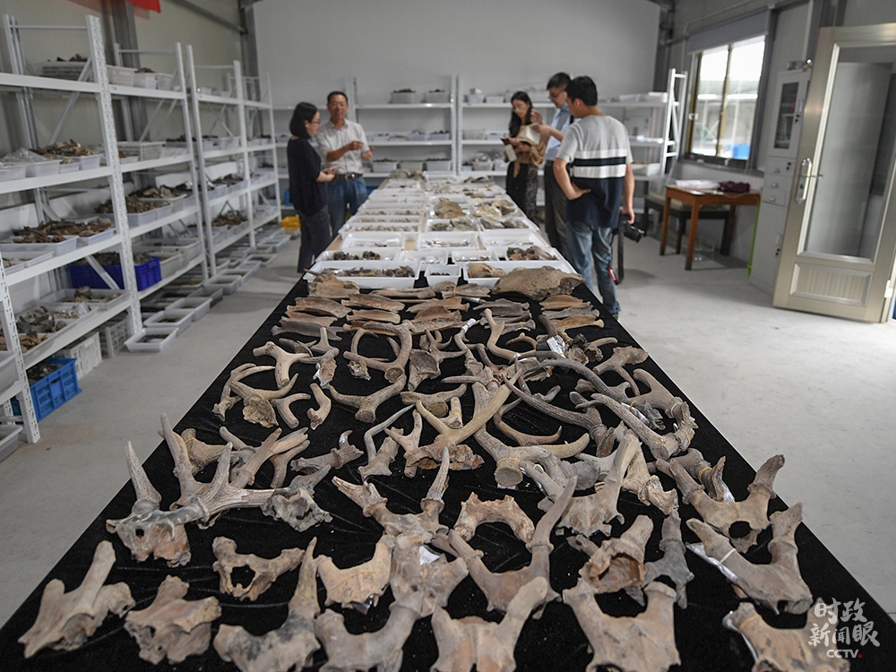 △井頭山遺址埋深5至10米,是迄今浙江和長三角地區(qū)首個沿海貝丘遺址。文物庫房內(nèi)擺放大量鹿角、貝殼等。