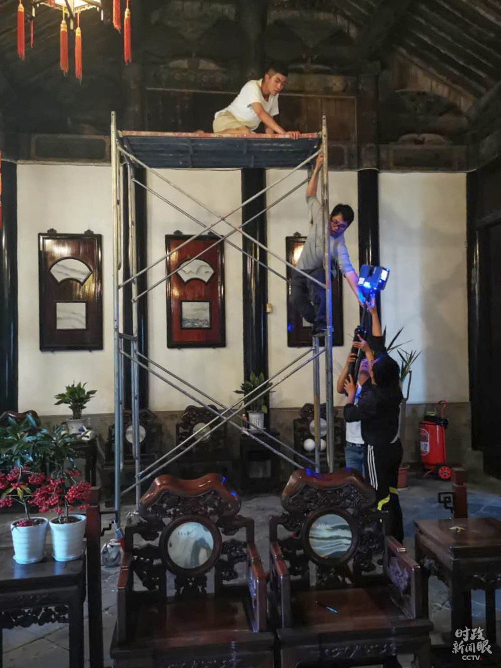 △北大考古文博學(xué)院學(xué)生架設(shè)三維掃描儀,開展文物建筑考古與測試實習(xí)。