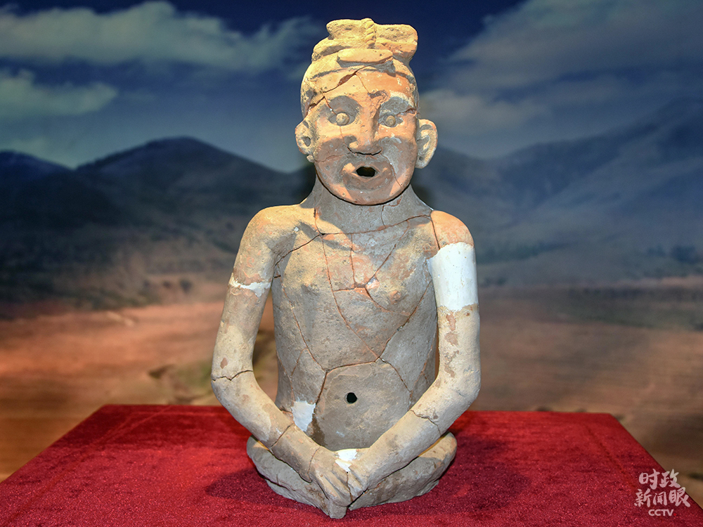 △這是修復(fù)后的整身紅山文化陶人,人像通高55厘米。這尊寫實人像距今約5300年,是中華五千年文明的一個實證。